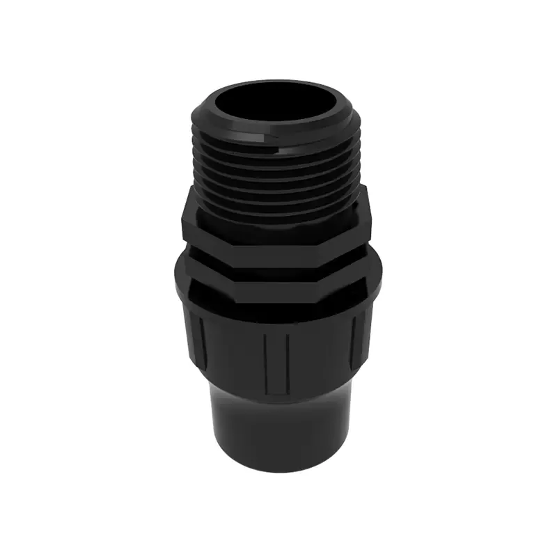 1 、 Thiết kế khóa ren Giữ chặt ống PE và phụ kiện một cách an toàn để tránh bị ngắt kết nối dưới áp suất cao.