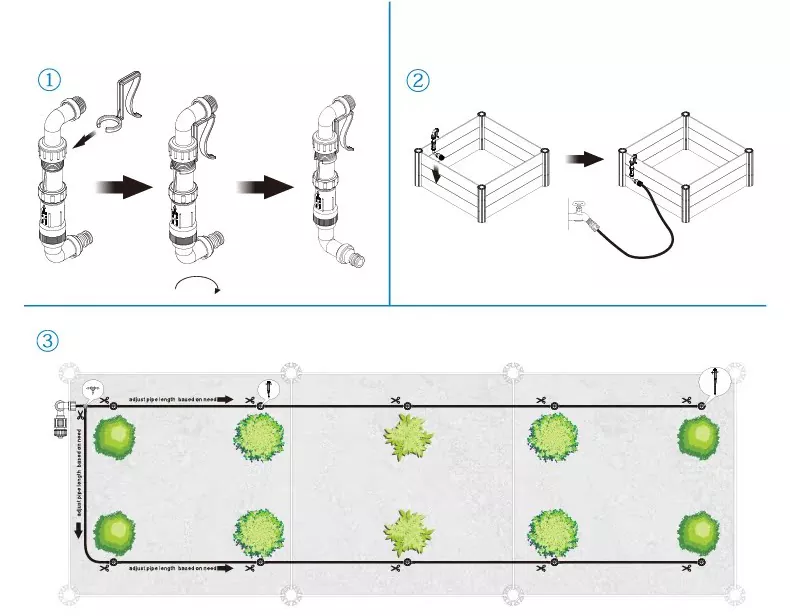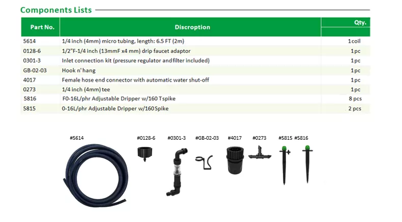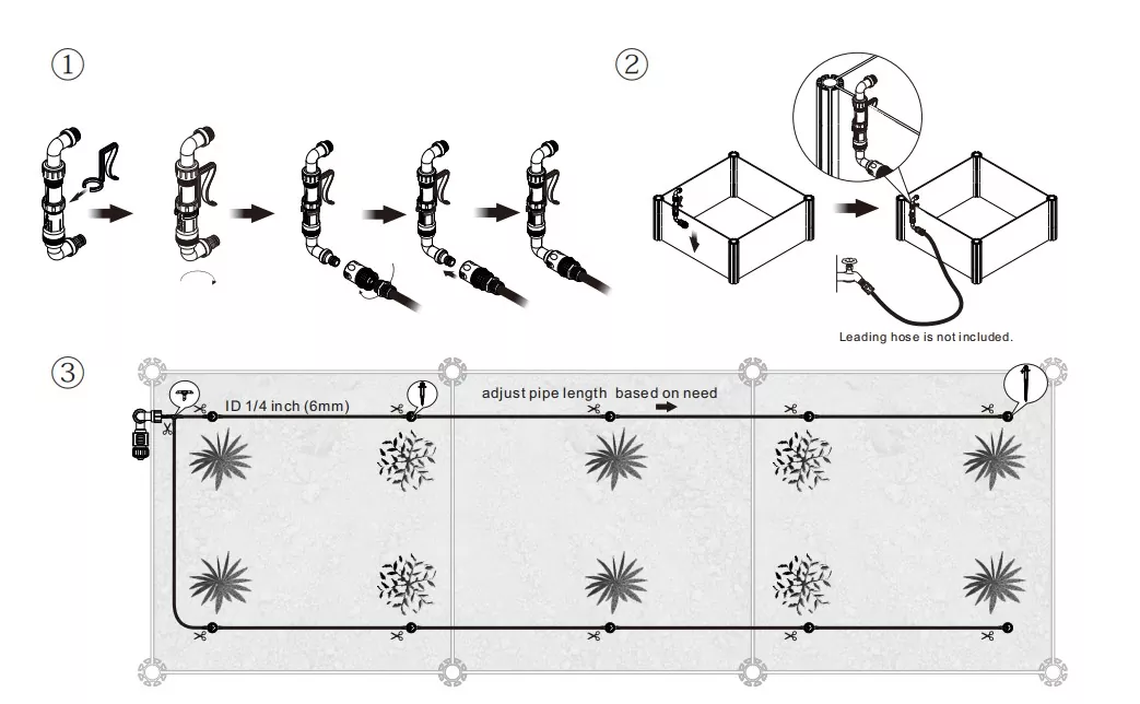 Toàn bộ bộ phụ kiện được kết hợp hoàn hảo, ống PVC 4mm vừa vặn hoàn hảo với các phụ kiện và bộ chuyển đổi ba chiều. Sau khi lắp vào, nó sẽ được cố định tại chỗ mà không cần băng PTFE hoặc khoan thêm. Chiều dài đường ống 2 mét vừa phải cho hầu hết các luống trồng cây trong gia đình. Cho dù đó là trồng một hàng hay trồng theo khu vực nhiều hàng, với ống góp ba chiều, các ống nhỏ giọt có thể được lắp đặt ở bất cứ đâu bạn muốn, toàn bộ hệ thống tưới tiêu có thể được thiết lập trong nửa giờ.