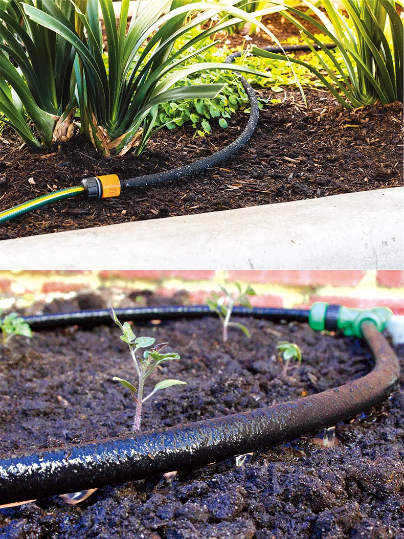 Dòng vòi nhỏ giọt làm vườn watex được làm bằng cao su tái chế bền để tạo thành một ống mềm dẻo với các lỗ siêu nhỏ tích hợp. Khi nối với nguồn nước, nước từ từ thấm qua các lỗ mao mạch trên thành ống dưới áp lực nước.