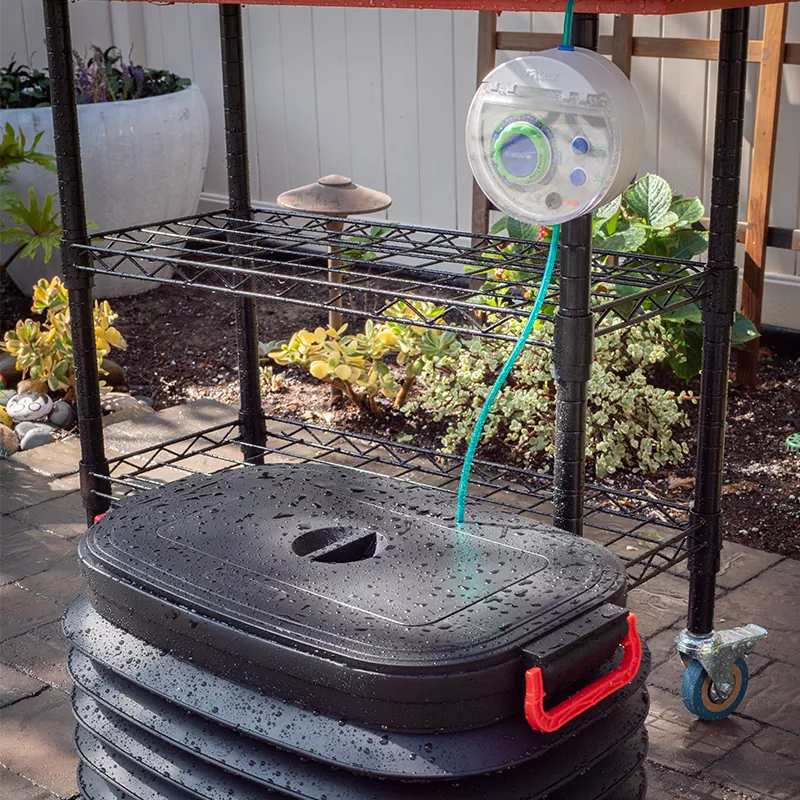 Giải quyết vấn đề về nguồn nước của bạn, bộ tưới nhỏ giọt Smart Watering Aquamatic có thiết kế thân xô có thể thu vào đơn giản và trang nhã để dễ dàng cất giữ. Khi mở bình chứa nước ra, nó có thể chứa tới 37 lít. Nắp bình kín giúp muỗi tránh xa.