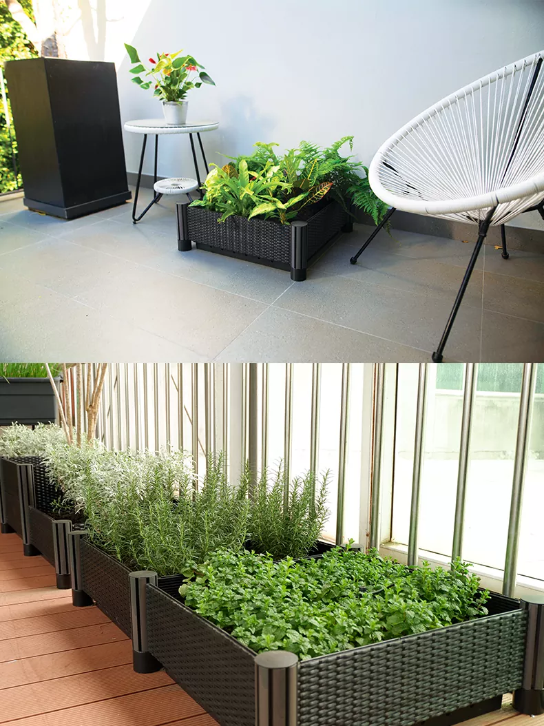 Thích hợp cho khu vực ngoài trời nhỏ - ý tưởng cho ban công, hiên nhà và sân hiên. Triển vọng giả Vine Không có công cụ, dễ lắp ráp và có thể sử dụng được.