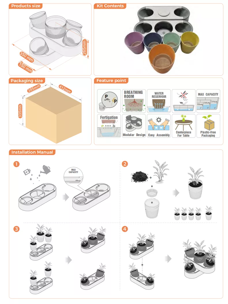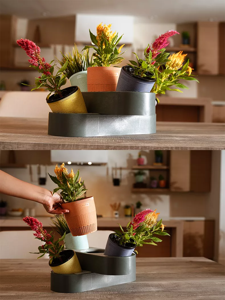 Xếp chồng hai đế chứa nước theo chiều ngang, sau đó đặt các chậu hoa vào bên trong. Được làm từ vật liệu nhựa rơm lúa mì chất lượng cao, thân thiện với môi trường, Bộ dụng cụ làm vườn để bàn có thể xếp chồng lên nhau của Watex không chỉ có phong cách mà còn bền và lâu dài. Vườn để bàn có thể xếp chồng lên nhau cực kỳ dễ thiết lập và là sự bổ sung tuyệt vời cho bất kỳ ngôi nhà nào.
